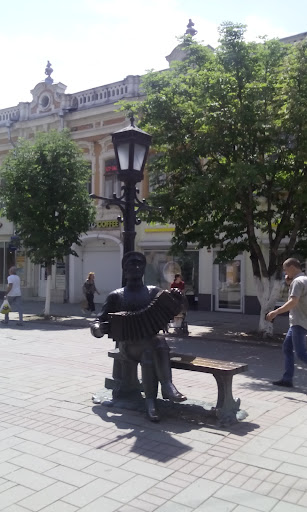 Открытие музыкального памятника (дважды в день из скрытых динамиков играет гармоника) стало подарком саратовцам ко Дню города 12 сентября 2009 года. Финансировал изготовление скульптурной композиции, автором которой стал скульптор Владимир Пальмин, банк "Экспресс-Волга". Бронзовая фигура изображает сидящего на скамейке музыканта в традиционном русском наряде, играющего на знаменитой саратовской гармони с колокольцами. Саратовская гармоника появилась в 1855–1856 годах, первая мастерская по её производству была открыта Николаем Карелиным в 1870 году. Музыкальный инструмент, являющийся одной из визитных карточек Саратова, производился более ста лет. В церемонии открытия приняли участие гармонисты и фольклорные коллективы города. По словам присутствовавшего на праздничном мероприятии главы администрации Вячеслава Сомова скульптура не увековечивает память утраченного производства, а наоборот должна стать первым шагом к его...