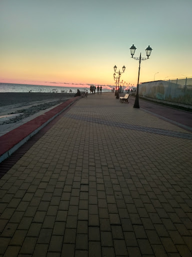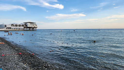 There is no other place in the world you get to enjoy the black sea as here! Construction wise it's wide, long with alot of options for scenery. The stones are peculiar yet astonishing, variety of food spots, bicycle parking and rentals, the breeze is super silent sometimes very calm and peaceful, many hotels, restaurants to choose from including chains like McDonalds and KFC, it stretches from adler town to Rusky Dom areas, it's easily Accessible and safe, with parks friendly locals with exciting activities of the Russian culture from pet monkeys, tigers to solo beach performances that make this place worthwhile, the sand is dark, acess to sun and swimming is for everyone with tent rentals and public...
