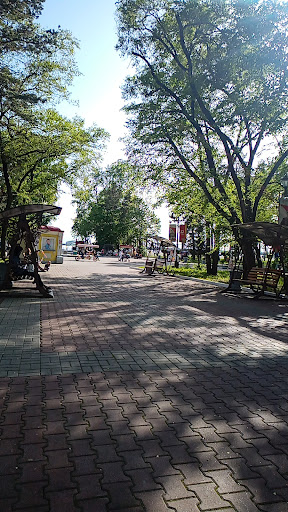 Парк довольно протяженный, есть велодорожка, сдаются в прокат семейные многоместные велосипеды, покатать вдоль Амура по набережной одно удовольствие)) много лавочек, среди них есть лавочки-качели, в данный момент фонтаны не работают, уже неделю, возможно после продолжительных ливней. Каждые 30 метров стоит мороженка. В начале набережной напротив посольства есть открытый круглогодичный бассейн с лежаками для отдыха и загара. Из минусов - как и везде нет достойной еды, один низкокачественный фастфуд, кофе в многочисленных мини кофейнях отвратительный 🙈 за это жирный минус. Ближе к бульвару есть несколько аттракционов и бесплатный мини городок для малышни (горки, домики) насладиться видами Амура толком не удалось, т.к. ведутся ремонтный работы, и по всей длине набережной закрыт подход к воде сигнальной лентой и стеной из мешков от затопления. В целом, для неторопливого гуляние в солнечный денек...