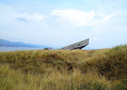 Read moreКлассное, необычное решение!.. Две гигантских ж/б опоры с гранитной облицовкой встают под углом над берегом и пересекаются на высоте 22-х метров – изображая приподнятый над водой нос корабля, который доставил сюда, на Малую землю, десантников. А позади реально плещется море... По левому борту корабля-монумента – бронзовая группа бойцов: командир в ушанке, прикрывающий его матрос, пехотинец, девушка-санинструктор, кто-то ещё позади. Они готовы десантироваться на сушу и – как бы зависли в воздухе... Так очень зримо передан момент высадки. На правом же борту «корабля» высечен барельеф с изображением бойцов, как бы вросших в землю, в степь, и готовых к атаке...