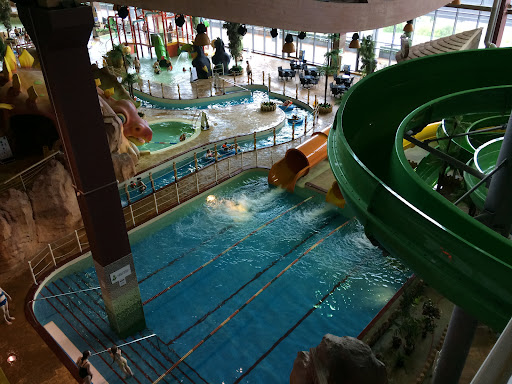 Просто хороший аквапарк. Начнем со входа, покупка билетов и заполнение анкет, проходит довольно быстро, сдаем одежду, проходим турникет. Шкафчики электронные, открываются и закрываются с браслета. Кабинок для переодевания достаточно. В душе тоже всегда есть место. Полы теплые, приятные, луж практически нет, но все же лучше ходить в сланцах. Горки стандартные, пара джакузи, в одной вода очень теплая и приятная, в другой по прохладней. Хотите согреться, есть финские сауны, максимально расслабиться и прогреться, тогда вам в хамам. Хамам кстати очень классный, температура полков и стен одинаковая, легкий туман, иногда присутствует запах эвкалипта. На выходе есть бар, с чаем, пивом, коктейлями. Купель с холодной водой, если вы экстримал) Территория не большая, но потолки высокие, хотя все равно некоторым здесь почему то жарко. Охладится кстати можно проплыв по импровизированной реке, в ней есть прохладные фонтанчики и водопады. У терминалов, вы всегда можете посмотреть сколько у вас осталось оплаченного времени. Поесть пиццу, шаурму, чай, кофе, все это можно без предоплаты, по браслету, чек вам предоставят на выходе) Чеки выдают с детализацией, за каждую совершенную покупку, это очень удобно, исключается возможность обмана, со стороны заведения. В целом, в аквапарке два основных минуса: съэкономили на плитке, и в аттракционе морская волна, покрасили пол влагостойкой краской, которая местами отлетает( и да действительно в выходные и праздничные дни, от запаха хлорки здесь порой режет глаза. Все остальное гуд, рекомендую! Обычно, я приезжаю сюда с детьми, и пока они бегают, прыгают и катаются с горок, отправляюсь в хамам и джакузи, за релаксом. В итоге получается отличный...