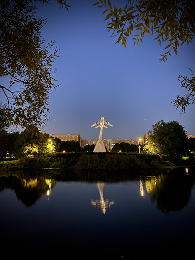 Read moreThis may not be the coolest park I’ve seen, but it has an extremely important feature, specifically, it is located right in between an industrial district with odious highway on one side and dormitory area on the other, which makes it a safe place for people and doggies. Plus, there is a lake, a lot of magnificent trees, a wooden bridge, and also a bulky airplane to...