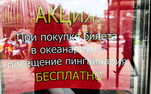 Read moreНеоправданно высокая цена, 900 рублей просто не за что, два маленьких зала с рыбками и один аквариум с пингвинятами, которые можно пройти за 10 минут, мы дольше в очереди простояли, чем там находились. А еще делают фотографии, одну дают бесплатно, другие на магните и в рамке предлагают по 500 р. Видимо в такую неоправданно высокую стоимость входит и эта бесплатная распечатанная фотография. В общем, если вам некуда потратить 900р и некуда деваться 10 минут, то...