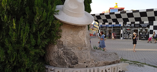 Памятник (если его можно так назвать) интересный. Сфотографироваться обязательно нужно всем. Даже очередь выстраивается. Местные фотографы предлагают услуги бесплатной фотографии. Нужно сфотографироваться на их фотоаппарат, а затем пройти к "будке" за фото. В итоге бесплатное фото обошлось 500 рублей. Хотя можно было бы и не платить. Теперь подробнее. Предлагая услугу абсолютно бесплатного фото аргументируют тем, что это акция для популяризации курорта. Однако, умалчивают, что бесплатно фото размером примерно 3х4 (или меньше) на котором с трудом можно рассмотреть лица. Затем Вам предлагают на выбор магнитики, фотографии "нормальных" размеров. А есть специальная акция (акционерами которой мы и стали 😁) - комплект "семейный" - большое фото (половина листа А4), два магнита на холодильник и, конечно же обещанное бесплатное фото на память. Комплект семейный обошелся в 500 руб. Хотя, повторюсь, покупать никто не заставлял. Как правило, люди, планируя отпуск подобные расходы предусматривают. И таких бесплатных фото много - "на каждом углу". Но решать каждому. Кадры на магнит и на фото на Ваш выбор. Откровенно говоря, в век цифровых технологий мало кто доходит до печати фото и хранит гигабайты фото на магнитных дисках. А тут все-таки живое фото получаете...