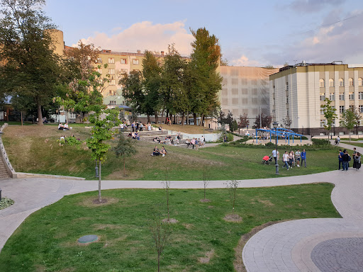 Read moreИнтересный парк, сначала смотрится как небольшой сквер, потом как из матрёшки, выскакивают новые неожиданные повороты. Три уровня,семь зон, и кстати памятник Осипу Мандельштаму и остаток крепостной белокаменной стены около женского монастыря формально относится к парку. Сначала здесь была школа (где сейчас фонтан), потом в военные годы госпиталь, в мирное время поликлиника, тогда же появился больничный сад из лип. Затем больницу снесли, деревья вырубили, хотели построить еврейский центр или хотя бы гостиницу, но жители возражали и , как часто бывает, результате получилась парковка. И это безобразие длилось до тех пор, пока столичные власти не осенило спросить у местных жителей, что же они хотят....