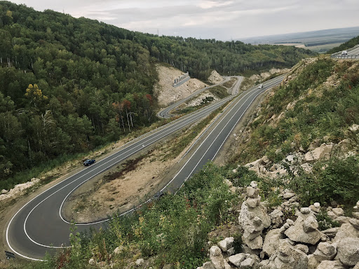 Для российского преимущественно равнинного ландшафта вполне уникальный серпантин. Если сравнивать с серпантинами ближайшего Тянь-Шаня, то протяжённость, высоты и пропасти уже не те. Дорога очень хорошая, без проблем заехали на бюджетном легковом авто. Сверху делать фактически нечего. Есть пара локаций в виде кузницы и музея шоколада (во время нашего посещения...