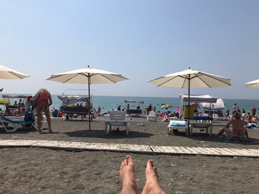 Пляж заметно изменился в лучшую сторону. Здесь можно подобрать местечко где скоротать время как в тени, так и под солнцем. Да, от чудовищной бедности основной массы поситителей пляжа вам не укрыться. Да, это РФ, в какой части пляжа вы бы не лежали, под навесом, зонтиком или в Вип зоне. Тем не менее, есть хороший сервис по сдаче пляжного инвентаря, выбор уровней комфорта(иногда весьма размытый), спасатели, пляж убирают, много чистых кабинок для переодевания, душ, ноги помыть., хороший не вонючий и бесплатный туалет. Если вы рядом где-то живёте, то это удобно, если у вас есть возможность уехать в Турцию, в ол инклюзив, лучше туда. Там можно укрыться от нищеты хоть на время, за разумные деньги. Пицца, рядом с бывшим кафе Сочно, вкусная, но с прибабахом. В Маргариту добавили кавказских специй так, что от вкуса харчо не убежать и здесь. Правда, если попросить, то 'авторский' твист могут убрать из нее. Гавайская пицца, больше как барбекю чикен, единственно, что релевантно с названием так это ананас. Но вполне все с'едобно. Рекомендую. Что касается самого купания, вода изумительная, а разве это не главное? Чтобы войти в воду есть удобные мостки, можно почти миновать армию жирных целлюлитных бабушек и дедушек с громадными животами в спортивных плавках. Все там будем, а этой армии, но...