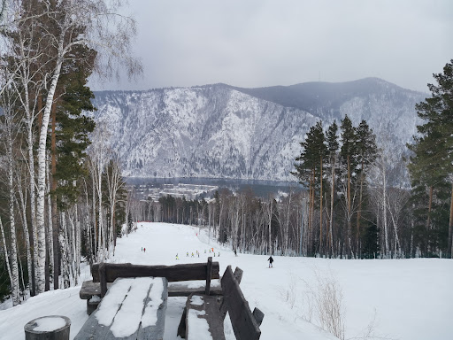 Отличный комплекс для выходного дня всей семьёй : горнолыжка с двумя склонами, для любителей плавных покатушек, по-длиннее, и крутая, достаточно широкая, метров 20, для любителей скорости. Новый кресельный подъём за 5 мин. Рядом плюшечная. Не поесть, а покататься, с бугелем. Рядом ледовый стадион с прокатом коньков, лёд достаточно приличный, но днём увидел хоккейную команду, нужно уточнять время работы катка... На верхней площадке деревянные... Инсталляции в стиле р. Нар. Сказок. Выполнены топором и бензопилой, без изысков 😉. Смотровая площадка, две, точнее, прекрасный вид гор, зажимающих Енисей. Есть кафе внизу, фастфуд, ср. Чек, думаю, будет 350-400. Кофе варит машина, неплохой. Прекрасное место для семейного отдыха, на мой взгляд. Да, мне кажется, и не только мне, что зимой здесь теплее, чем в Абакане и саяногорске,...