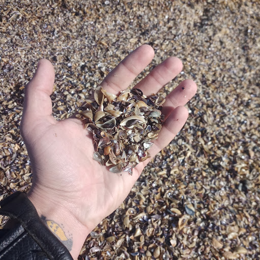 Камни под водой об которые можно порезать ноги, а на пляже везде разбросаны ракушки. Пляжем это место сложно назвать. Весь берег зарос травой, иногда по берегу ездят мотоциклисты, так же на берегу находятся большая стая собак. Так что лучше всего пройти по берегу дальше за большие камни где отдыхает много людей. Так же в море сливается...