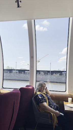 Прогулка на Рэдиссон Ройял Отлично провели время с ребенком. 2.5ч. по воде. брали билеты в основной зал. Переживала, что может укачать (меня:)), но все прошло отлично! И совсем не страшно! Очень современная яхта! А вид чудесный с обеих палуб. Все чистенько. Еда очень вкусная и свежая! рейс был в 17-00 в будний день (летом с ребенком самое то: уже не сильно печет, но и не темнеет). С нами было много иностранцев, в т.ч. с очень маленькими детьми. Все вели себя спокойно и прилично. На следующий рейс (с 20-00) уже было много шумной молодежи. Рейс от Парка Горького-во второй половине дня лучше садиться по правой стороне-там тенек сначала, потом чуть солнца (поворот делает яхта), потом опять тенек, потом поворот и немного солнца (но мы много времени были на корме). Посередине -солнце не достаёт, но и вида особо нет. Хотя никто особо и не сидел-в основном на корме и на 2 этаже. Мы зашли на яхту в числе первых, нас проводили к столику у окна, сначала предложив второй этаж. Лучше заходить пораньше-выбор мест больше:) В нижнем зале работает кондей и музыка. Очень приятная атмосфера. Наверху обдувает ветерок. Лестница наверх очень крутая. С дошколятами советую только нижний зал. Там безопаснее для активных непосед, больше места, не напечет голову и нет соблазна высунуться из-за ограждения, а родителям поспокойнее. По еде-примерно от 1т руб на чел без алкоголя. При оплате картой платинум и голд действуют скидки. Очень вкусный Big Boss Tea-290р., Цезарь с курицей-590р., с тигров креветками-720 р (вроде так), бургер 610р. Отличные официанты. Билеты купили онлайн на сайте компании. Есть касса в европейском (вход #5, в парке Горького). Не распечатывали, пришли тут же на почту, при посадке сотрудник флотилии просто отсканировал электронный билет с экрана смартфона и все! От м. Парк Культуры идти минут 10 быстрым шагом: через мост, потом чуть вдоль Парка Горького. Причал видно издалека. Обязательно покатаемся ещё!