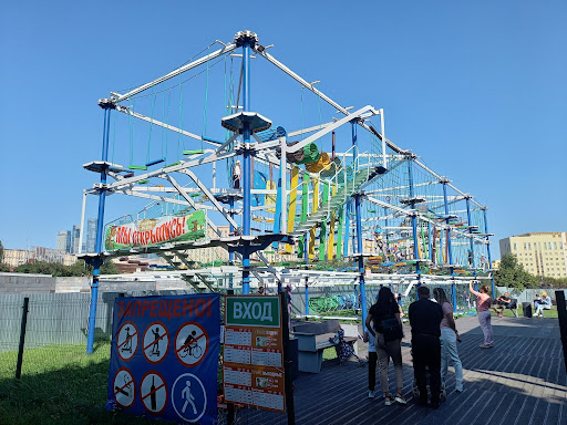 Read moreИнтересное место, приятный, заботливый персонал, на входе хостес. Пускают малышей вниз, родители могут им помогать. Наверх от 130 см. Есть безнал. Есть буфет. Можно оплатить помощь инструктора дополнительно. Негде помыть руки, туалеты только те, что в парке. Есть батут и водный шар. Заезда к парку нет, машину нужно ставить у...