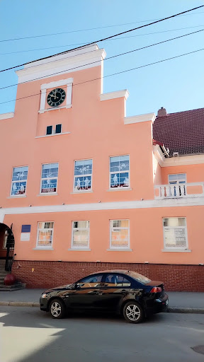 Уникальные часы, единственные в области, с механическими фигурками музыкантов, украшают это строгое, но элегантное здание. Музыканты кланяются зрителям, кланяются друг другу и с увлечением отбивают музыкальную мелодию. Какую? Узнайте сами ;) Представление можно посмотреть три раза в день. Интересно и лаконично украшен вход в здание, куда ныне с удовольствием устремляются юные...