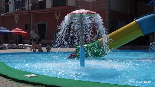 вода без подогрева во взрослом бассейне. я не считаю это огромным минусом, но вода в июне месяце еще не так сильно прогрета даже для взрослых.
