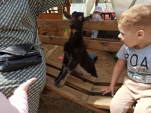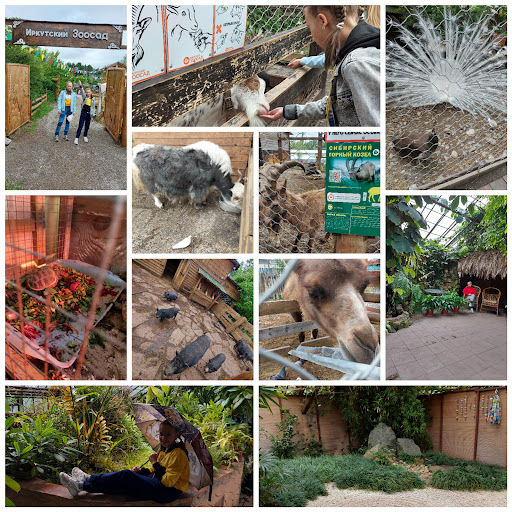 Read moreИркутский зоосад Ботанического сада Иркутского государственного университета напротив микрорайона "Первомайский" города Иркутска - очень интересное и развивающееся место, знакомящее горожан с миром дикой природы. Вход платный: 350 рублей, но есть скидки от семейного билета на 3 человек и до многодетных семей.Здесь вы увидите не только таких животных как верблюд, як, волчица, павлин, кролик, свинья, корова, сова, филин, козел, овца, черепаха, эму, но и сможете поваляться на сеновале и поучаствовать в интеллектуальных викторинах и познавательных мастер-классах. Во время нашего посещения 4 мая 2021 года сотрудник зоосада Роман провел интересную викторину о воде с подарками, а потом познакомил с микроскопом вместе с другой сотрудницей путем рассматривания воды до и после фильтрации, перьев птиц и кожи змеи. Кроме того, обращают на себя интерьеры Зоосада от плетеных заборов с крынками, сеновала и мельницы до настоящего мотоцикла "Урал" и миниатюрных деревянных машин. Наряду с этим отдельных зверей можно покормить крупой, приобретаемой в кассе Зоосада. Приезжайте с детьми в хорошую погоду и вам обязательно понравится. Главное: возьмите с собой хорошее настроение. С...