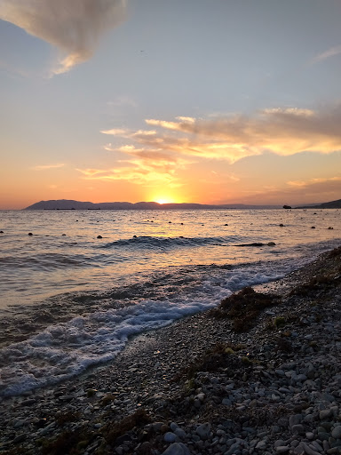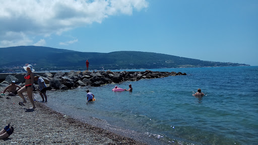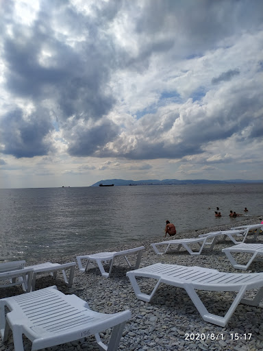 Чистый пляж, народу ну ооочень мало, почему не знаю, видимо лень чуть подальше пройти от центрального пляжа. Лежать по 150руб на целый день, зонты 100руб на весь день, море чистое, идеальное место для маленьких детей, т.к. море мелкое много много метров, если любите на глубине поплавать, то придется сначала много пройти в море, а потом и до плыть до буйков. Дно и пляж каменистые, но камни нормальные можно ходить в море в...