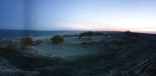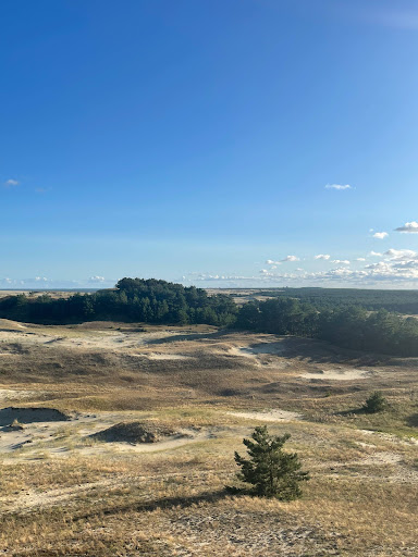 Read moreЯ думаю это самое мощное место для посещений . В плане впечатлений )выезжали из Кенигсберга на электричке до Зеленоградска , утром пораньше . В 8 уже ехали на автобусе до Косы. Где-то в 9 были на данной точке . В это время ещё нет толп туристов, даже кафе и магазинчики ещё не работают , а это то что надо . В тишине прошли по тропе до вышек , откуда открываются просто изумительные виды на дюны , на залив и море . На ту часть , которая выходит на залив ушло примерно 40-50 минут , спокойно не торопясь . Потом посмотрели сторону на море , там пляж с белым песком . Летом думаю там круто загорать . Минут 10 ушло на это ) так как двигались своим ходом , пришлось подождать пока появятся таксисты ,но ждать не долго было и двинулись за 200 р к пьяному лесу ) от него ещё за 300 до высоты Мюллера . И обратно опять автобусом . В итоге , все с электричками и автобусами вышло - около 1100 р на двоих ) конечно если брать экскурсию выйдет дороже , плюс будут заезды в места , которые мягко скажем можно было и пропустить , но зато не надо будет париться о поиске транспорта от места до места . Всем хорошей...