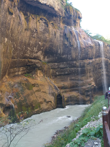Дорога из Минеральных вод на машине по (дорожным) заторам, не спеша - 2,5 часа. Интересны не только водопады, = само место. Это ущелье. Временами дорога идет под навесающими скалами. Если не подниматься по крутой лестнице к обзорной площадке (кстати, удовольствие платное - 50руб.), не подходить к обрывам, не рисковать, - место относительно безопасное и вполне комфортное даже для посещения пожилым и немощным, людям, страдающим фобиями и маленьким детям. Повсюду есть кафе, магазинчики и торговля с лотков. Основные продажи: алкоголь и вязанные шерстянные изделия (свитры, кофты, шали, платки, ности), а также овечьи шкуры и изделия из них. Глинтвейн - насыщенный и вкусный, но содержит алкоголь. Хычины представляют собой плоские, сложенные вдвое блины с начинкой из субпродуктов или картошки. Для любителей - шашлыки, люля-кебаб и остальное. Предлагаются места для ночевки. Интерьеры - постсоветский упадок в стиле постапокалипсиса. Туалеты - домики с дыркой в полу и миской для мелочи (цена -10 руб.). Сервис - "никакой". Но все оптимистично, дружелюбно (напоминает базар в Кисловодске). Дополняет картину уникального места своей аутентичной культурой. До всех точек можно доехать на машине. Но лучше ходить пешком: больше впечатлений. Парадоксальное предложение: используйте минимум возможностей для скалолазания и приключений, меньше "аховых" точек для съемки. Чем большую активность вы проявляете, тем больше риск сломать, разбить, потерять гаджеты, предметы одежды. Велики риски падений, вывихов...
