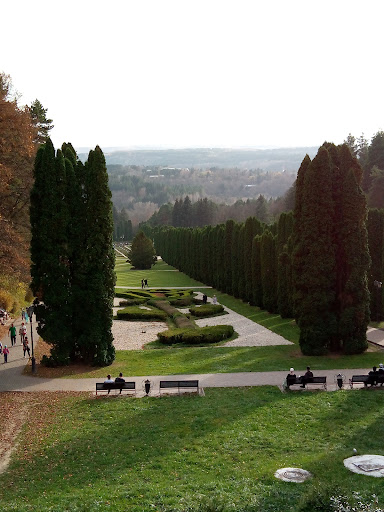 The Valley of Roses is one of the most beautiful corners of the park, where more than 30 varieties of roses are grown. They write that there is a rose garden in the form of a chessboard and a flower calendar that changes daily, but I did not pay attention, and it was late, we just looked at the roses and the magical forest around. The alley of thujas is very beautiful, high, reaching into the sky, the peaks of grown thujas. And the path between them, where happy people walk. Later I read that this is the largest man-made park in Europe, occupying an area of 966 hectares. Many trees grow in the park, including rare ones - cork oak, fir, different types of maples. In the mornings in the park you can meet squirrels, and if you are lucky - a golden eagle and a wildcat. This is a place where nature, history and health benefits are combined - people come here to walk, breathe clean air, drink mineral water. The park is open all year round, and you can find something interesting here at any time - magnolias bloom in spring, roses in summer, leaves turn golden in autumn, and snow-covered firs look especially...