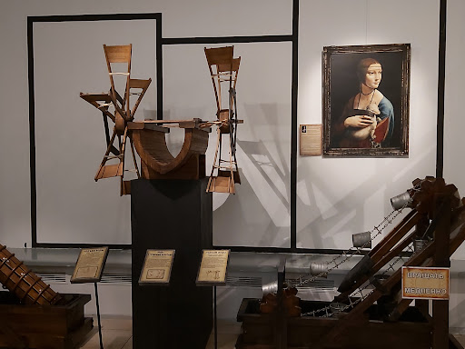 Увидел на kudago экспозицию Leonardo da Vinci. Думаю надо сходить. Приехали. На входе с невозмутимым лицом нас встретила женщина которая вместо того чтобы просто вежливо рассказать про правила поведения и цены экспозиции откликнула нас «куда вы мимо прёте». Ну хорошо думаю, объявила ценник 600 рублей с человека.Заплатил. 3 зала всего. На выставке представлены оригинальные устройства и механизмы по чертежам Лернардо и его картины. Всё можно потрогать и проверить как работает в реальности- но в российских реалиях это очень плохая идея, конечно же пришли «кабаны колхозники со своими личинками меньше 5-ти лет». На протяжении всей экспозиции эта «компашка» как психи ломали и стучали по всем экспонатам. У меня даже чуть перепонки не лопнули. На этой экспозиции нас пригласил гид послушать историю выставки,но когда он говорил -ничего не было слышно из-за «компашки». И ладно бы он сказал- что так нельзя себя вести, но промолчал и норм-хотя он работает на этой выставке!! Вот это и есть олицетворение российского...
