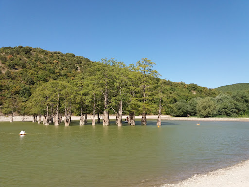 Read moreМесто неплохое и красивое. Вода мутная, но теплая. Ближе к выходу пляж более песчанее. А если идти к кипарисам, то там он каменистый. Пляж, конечно, узкий, но если ехать с утра или хотя в 12 уже быть на месте, то народу немного. От самого пляжа до кипарисов идти минут 10-15 по бетонированой дороге. В этом я не жалуюсь. Если ехать сюда, как на экскурсию, то не советую потому что зря потратите 600 рублей или больше (в зависимости от места, где брали саму экскурсию), потому что время ограничено. Ехала с Анапы, своим ходом (на маршрутке), потратила всего 110 рублей (туда-обратно), ни капли не жалею. Бесило, что никто не смотрит за состояниями кипарисов, в плане в том, что люди наплевали на то, что на табличках написанно, что нельзя залезать на ветки деревьев, люди только это и делали, мне уже было страшно что вот-вот они его сломают. И даже нет смотрящего за этим! А еще я недовольна, тем что родители не смотрят за детьми, а те в свою очередь на узком пляже выкапывают ямы и заливают их, тем самым разводя грязь, которая стикает в озеро, и иногда захватывает чужие вещи. Рядом с туалетоми (они чистые и не пахли), была детская площадка, но уже старая. И детей я там совершенно не увидела. Цены на все можете...