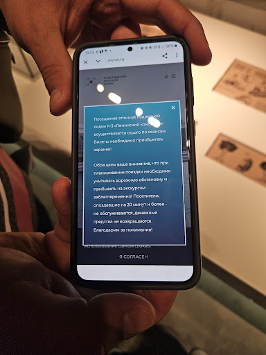 Read moreБилеты купили на вход в музей и экскурсию on-line на 11.00. Парковка рядом с комплексом большая, но платная 100р/ч. В 11.00 очереди на вход (металлоискатель) не было. В целом посетителей было мало в 11.00. Экскурсию на подводную лодку К-3 on-line не смогли купить на нужную дату (не было билетов), но удалось купить билеты на подводную лодку в музее на текущую дату. Были с семьёй - 4 чел. Музей очень большой современный, много интерактива для детей. Есть как подлинные экспонаты, так и очень реалистичные макеты. Экскурсию по 1 этажу проводил экскурсовод Ярослав, очень понравилась подача информации. Чтобы не просто пробежать по музею, а вникнуть в информацию одного дня явно мало. Помимо основного здания музея можно посетить формы. Нам музей очень понравился. На территории музея обедали в кафе "Причал". Это кафе быстрого питания. Обслуживают быстро. За 4х чел заплатили 4т.р. Брали: донеры (курица, овощи, соус в лепешке), фрикадельки с брусничным соусом, картофель фри, блины, кукурузу, пончик и напитки. Рядом с кафе есть игровая зона для детей. P.S. Часть фото обработаны ИИ, удалены...