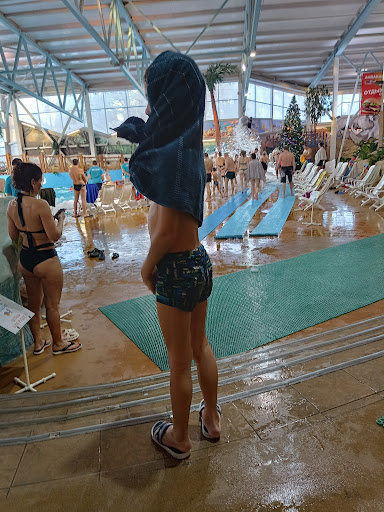 Read moreВопреки многим отрицательным отзывам мне понравилось! Начиталась и думала вообще не ходить или идти на три часа. Но в итоге взяли на целый день и не пожалели. Вода теплая, джакузи приятное, хамам шикарен. В парилке не была, но мужу понравилось. Муж со старшей дочерью обкатали все горки, мы с младшей тусили в волновом бассейне и джакузи)) волны включают каждый час на 10 минут. Этого достаточно. Остальное время там можно спокойно плавать, народ весь расходится. Из минусов - музыка. Громкая, но бесполезная. От нее к шуму добавляется ещё один. Ещё и с хреновым репертуаром попсовым. Лучше б нейтральную уже ставили, для фона. Хотя без нее лучше. Кафе. Кухня обычный общепит, к качеству еды претензий нет. Но к стоимости можно было б и подешевле))) на целый день пребывания накладно выходит. Ещё и орущие девушки о готовности заказа- это треш. Потратьтесь и установите систему как в макдаке, с номером и экраном. И не надо будет персоналу надрываться. Они и злые там такие наверно, что все время орут. А перекричать этот шум - это очень тяжело. И надо все время слушать или бегать спрашивать не тебе ли орут. Короче, это прямо минусище. Остальной персонал в меру неприветливый. Видно что все их порядком достали и они отбывают время. Как работник торговли могу понять что это такое и только им посочувствовать. Работа у них так себе))) инструктора, кстати, наверно и не должна быть любезными: все таки их задача следить за порядком. Но нам никто не нагрубил ни разу))) кстати, на телефоны люди фоткаются, а штатного фотографа видела уже ближе к вечеру пару раз. Но мы оставили телефоны в шкафчиках. Там кстати автоматическая система, все удобно, шкафы свои искать не надо, они пронумерованы))) Фены могли бы дать и получше, но по-моему они всегда маломощные такие модели. В общем и целом прекрасно провели время и заглянем ещё...