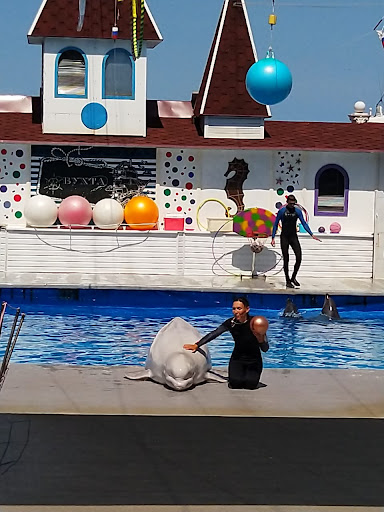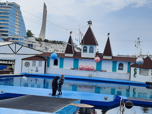 Read moreДельфинарий небольшой . 3 дельфина, 1 морской котик и 1 белый дельфин. Цена билета 700р . Дети до 5 лет без места бесплатно,но с предъявлением свидетельства о рождении. Три секции мест по цвету. Белый слева,по центру жёлтый,справа синий. Места в жёлтую секцию 800р. Но 100р не деньги,зато сидишь в середине. Выступление длилось минут 40. Разрешается снимать на телефон. Мне понравилось. После выступления можно за 600р сфотографироваться с дельфинами на свой телефон. За 700р фото на их фотоаппарат (фото готовы минут через 20). За 1500р можно проплыть с дельфином один круг. За 3000р поплавать с дельфином 5 минут. Это не мало как может показаться. За 5000р можно плавать 10 минут. До купания отправят в раздевалку, по необходимости,чтоб переодеться....