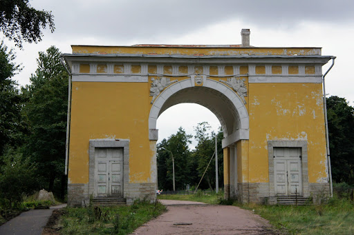 Парадный въезд в Ораниенбаум со стороны Санкт-Петербурга в стиле классицизма создавал архитектор Горностаев А.М. Заканчивать строительство в 1829 г. пришлось уже другому петербургскому архитектору – И. И. Шарлеманю.