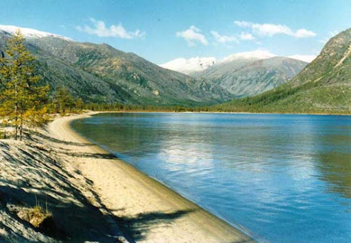 Берега невысокие, чаще поросшие лиственничным лесом или кедровым стлаником. По берегам встречаются песчаные пляжи. Несколько живописных мысов выступают в озеро. Узкое вытянутое озеро напоминает фьорды Норвегии. До конца июля на озере плавают льдины, но у берегов вода прогревается до +10-12 °C. Наивысшие уровни воды наблюдаются в середине-конце июля. Замерзает озеро в середине октября. Толщина льда к концу мая достигает 120—150 см, в отдельные годы доходит до 2 м[3].