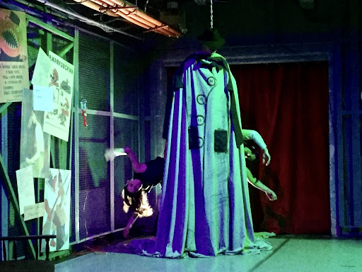 Режиссёр Мария Шмаевич представила на суд зрителей постановку, включающую в себя синтез самых разных видов искусств: пластические и акробатические этюды; декламацию; клоунаду; театр теней, драматические и сатирические сцены, и даже настоящую игру на скрипке и хоровое исполнение бессмертных «Стихов о советском паспорте».