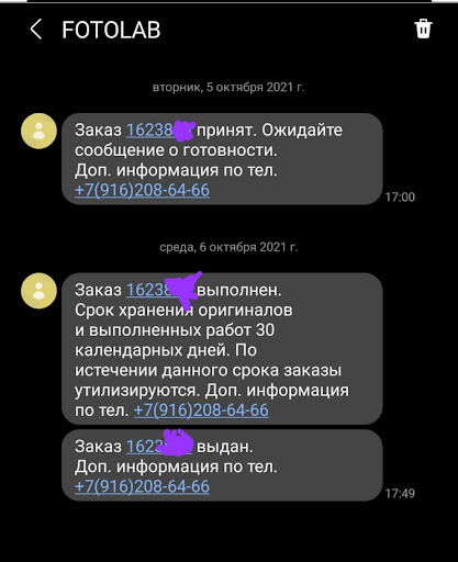 Лучше бы вместо безвкусно оформленных транспарантов к 9 мая сохраняли клиентам заказы, за которые они заплатили деньги. За проявку, нарезку и упаковку двух плёнок, например. Я про заказы 1256267, 1256268. Да, клиенты, бывает, живут в другом городе и не имеют возможности каждый месяц ездить в Москву. Но для этого есть телефон, чтобы можно было по нему позвонить. Понимаете, о чём я? "- Уважаемый клиент, подошел к концу срок хранения вашего заказа, что прикажете делать?" Хотя бы так можно было сделать? Причём, мы оговаривали с человеком, принимавшим заказ, то, что сразу я его забрать не смогу. Про сроки хранения не было сказано ни слова. Я впервые сегодня, придя в FOTOLAB, ощутил огромное чувство стыда за то, что являлся их клиентом. Когда мне в лицо сказали: "А ваши плёночки мы утилизировали!". Вот так вот всё просто в наши...
