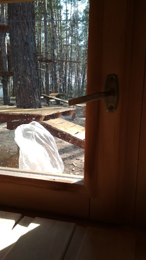 Дальше приключения не закончились на второй день, также начали готовить тарзан парк располагавшейся за ранчо. Теперь у нас добавился звук лесопилки со сверлением, долблением и конечно же покраской, теперь тонкий аромат бензина разбавили краской - настоящий сосновый запах. Эти работы продолжались с утра 9.00 до 19 или позже даже. Рабочие таразан парка, тоже молодцы складывали использованные банки с краской к забору воздуха приточной вентиляции расположенной за домом.