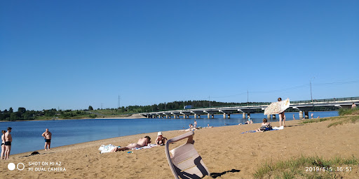 Read moreКрутой пляж, красивый вид! Вода чистая и быстро нагревается летом. Много мальков. Люблю там зайти в воду и замереть... Мальки начинают покусывать ноги))) Парковка есть бесплатная, но в выходные всегда мест нет. Платная тоже есть, недорого и на весь день. Выдают чек при оплате. Лежаков нет, зонтиков нет, есть немного деревьев,но всегда в их тени семьи с детишками. Магазинов рядом нет, так что все с собой. Но можно жарить на мангале шашлыки, сосиски... Ах да, Биотуалеты есть. Но ппц грязные. Мы бегали с пляжа в лесок. Ребенку брали с собой горшок, удобно!!! Пляж- песок и камешки. Есть даже экстрим- попрыгать с моста(не с мостика). Иногда привозят огромные горки прям в воду(платное удовольствие). Рядом есть прокат катеров, водных мотиков, рыбалка. Даже отель! Приятного...