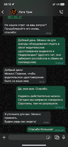 PS в тот же день написал в Лата Трек с вопросом, могу ли я взять в прокат оборудование с моим голландским в/у. Ответили моментально. Учитесь сервису,...