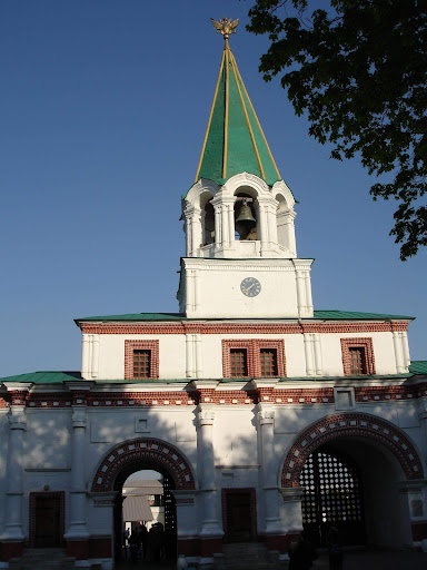 Это красивое и заметное строение, пройдя через которое оказываешься на спуске к реке. Четырехъярусное сооружение с высоким шпилем и часами. Через данные ворота осуществляли въезд на территорию Коломенского царские особы и их гости. Известно, что для забавы гостей и хозяев этого места с обеих сторон ворот были установлены механизмы, что обтянули шкурами львов. Механизмы эти работали так, что издавали львиных рык и даже шевелили глазами в угоду потехе знатным гостям. Верится с трудом, но когда вспоминаешь умения Леонардо да Винчи, то вполне веришь и в такое. Возвели эти ворота в 1672-1673 гг. Каждый ярус — это собственный уровень со своими особенностями. Первый, как и Спасские ворота, обладает проходом для пешеходов и проездом для экипажей. На втором ярусе находились музыкальные инструменты, механизмы для управления «грозными львами», что шевелили глазами и издавали рык. Третий ярус называли часовой палатой. Здесь располагался часовой механизм красивых часов. Ну а на последнем ярусе были колокола. Здесь можно услышать бой часов каждый новый час, а также услышать колокола, которые играют в честь победы в Полтавской битве...