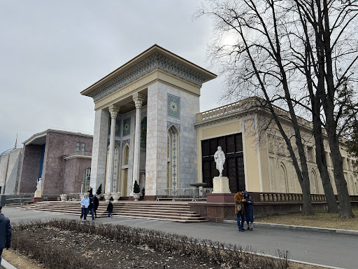 Read moreПавильон № 14 Азербайджанской ССР, был возведён к открытию Всесоюзной сельскохозяйственной выставки (ВСХВ) в 1939 году. Архитекторы Садых Дадашев и Микаэль Усейнов. Внешне Павилион декорирован искусными мелкими деталями в духе восточных мотивов. Роскошные фасады с полихромной майоликой и искусной резьбой смотрятся тонко и красиво. Особого внимания заслуживают окна павильона. Они выполнены в традиционной азербайджанской технике «шебеке». Это сложная ажурная рама из орехового дерева для цветных витражей. Рама собрана без клея и гвоздей.