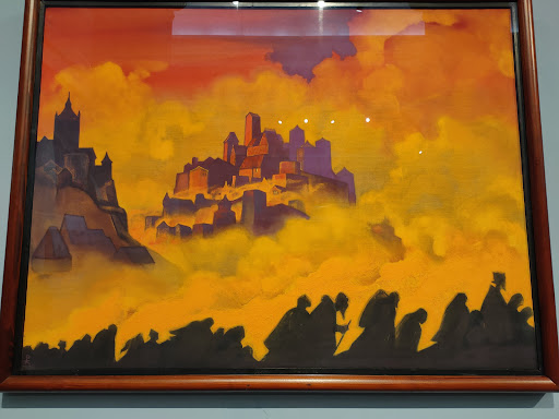 Read more"Музею Рерихов располагается в усадьбе Лопухиных. Это прямо в центре Москвы, стОит только пройти вглубь мимо Музея изобразительных исскуств имени А.С.Пушкина. А там в тишине спряталось историческое здание с уютным двориком, укутанным шуршащей листвой. При входе в музей встречают доброжелательные сотрудники. Все-таки на это всегда обращаешь внимание. Это одна из составляющих, настраивающих на восприятие. На первом же этаже висит портрет необычайно красивой женщины. Так изобразил Святослав Рерих свою любимую супругу - Девику Ране Рерих, которая была звездой индийского кино. Ну а наше знакомство с жизнью и творчеством Рерихов началось на втором этаже. Самый лучший способ посетить музей - это пройти по нему с хорошим экскурсоводом. Нам повезло. Эскурсию проводил директор и искуствовед Тигран Константинович Мкртычев, рассказывавший интересно и от души. Сейчас в музее находится самое большое в мире собрание произведений Рерихов, Николая Константиновича и Святослава Николаевича. В залах все подобрано по тематике. В одном зале представлена Русь, лики святых, какие-то религиозные и духовные метания автора. Конечно, много гор на картинах и восточных мотивов. Мне очень понравился зал с пейзажами Гималаев Святослава Рериха, который называется ""Гималаи в наследство"". Пыталась фотографировать картины. Но это дело неблагодарное. Невозможно передать цвет и магию. Картины надо смотреть не в книгах или интернете, а непосредственно тет-а-тет. Ведь буквально шаг в сторону и картина смотрится по-другому. Кстати, в свое время Рериха ругали за якобы неправдоподобные краски. Но горы ведь действительно могут быть такими яркими. Кроме картин в залах есть интересные предметы, привезенные из Тибета. Необычные украшения, предметы, хранившиеся в семье великих художников, их одежда. И совершенно удивительный стол, за котором разрешают и посидеть, и потрогать, побыть причастным к этой семье. Мы были большой командой. Но хочется еще пройти в тишине, подумать, помедитировать. Ведь творчество Рерихов связано с буддисткой философией, которая не...