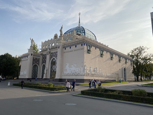 По моему мнению Павильон Казахстан входит в группу из самых красивых павильонов ВДНХ. Конечно же за счёт своего великолепного купола. Современный облик был восстановлен на основании исторического образа здания 1954 г. То что было до реставрации, откровенный ужас. Реставраторы воссоздали фасады, стеклянный купол со шпилем, национальный узор из цветной майолики, гранитную лестницу главного входа. Особое внимание уделили восстановлению скульптур рабочего-сталевара и колхозницы, а также монументов казахскому певцу и поэту Джамбулу Джабаеву и Герою Социалистического Труда Шыганаку Берсиеву. Особую сложность реставрации представляло восстановление стеклянного купола. Внутри здания представлен экспозиция, посвященная современному Казахстану. Внутри есть магазины, в том числе продовольственный, где можно купить казы – колбасу из конины. Это, наверное , единственный магазин, который я знаю, где продают настоящие казы. Очень рекомендую, вам...