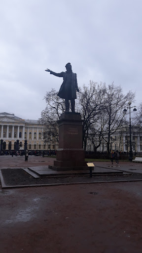 Read moreНебольшая площадь перед Русским музеем с очень маленьким, но симпатичным сквериком в центре где можно немного отдохнуть в тени высоких деревьев по пути от храма Спас на крови в гости к чижику на Фонтанку или к Гостинному двору на Невском проспекте. Там же, прямо на площади есть платная стоянка для автомобилей и экскурсионных автобусов где всегда можно найти свободное место, очень удобно, если у вас есть немного времени для прогулки...