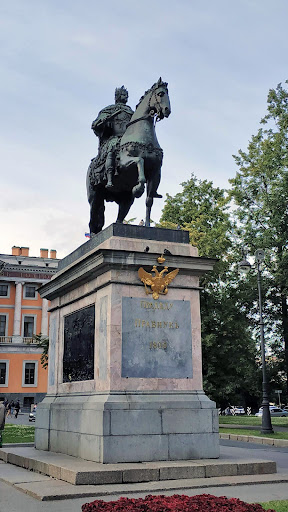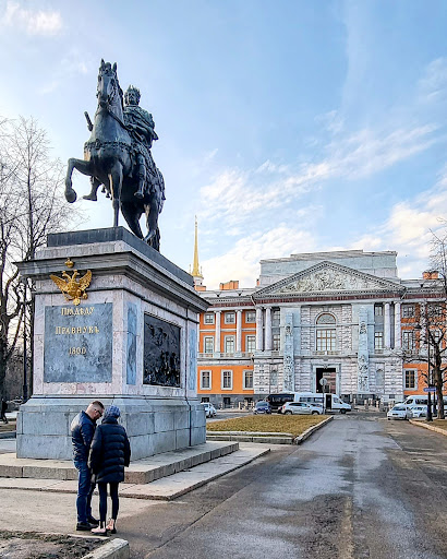 Read moreHuge monument for Peter the I in front of Mikhailovsiy Castle. It is a very funny sculpture, because if you look at it from the near, then it seems that the horse has a boot in the back leg. If you fo further back, then you see that he actually has a hoof. There are reliefs depicting the war on the pedestal of the monument. And there are multiple place you can rub the relief for good luck 🍀🤞 You can see those place by the colour of the relief - they are shinier and...