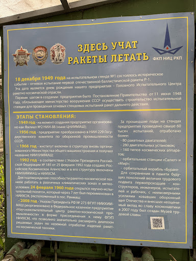 Read moreПотрясающее место, музейчик небольшой, но очень уютный и красивый. Наружная экспозиция, представлена несколькими агрегатами, испытанными в этом городе, внутри дома, где останавливался сам Королев, вам покажут и расскажут о самых разных достижениях отечественной ракетно-космической отрасли. Но музей богат не только экспонатами, но и прекрасным хранителем данного музея, по совместительству давним сотрудником, научно-испытательного центра ракетно-космической промышленности, заслуженным испытателем космической техники, Сергеем Ивановичем, который может часами рассказывать о своей любимой тематике, поддерживая интерес. Особенно было приятно, что он отложил свои дела и открыл для нас музей, чтобы всего для двух посетителей, провести шикарную экскурсию, которая продолжалась аж спустя полтора часа, после закрытия музея по графику. И что так же приятно, экскурсия, как и сам вход, совершенно бесплатны, ведь как сказал экскурсовод "Музеи должны быть бесплатны". Наоборот, нам даже пару магнитиков вручили) ВАЖНО! Лучше подавать заявку на посещение заранее, чтобы Сергей Иванович смог спланировать свой график для проведения экскурсии, лист с контактами прилагаю к фото. Любителям космической тематики, музей к посещению,...