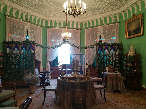 Read moreГлавное архитектурное сооружение парка Александрии. Начало строительства 1826 год. Архитектор А.Менелас. Идеально вписан в ландшафт парка. Дворец Коттедж расположен на высоком холме, откуда открывается вид на море. Живописный, оригинальный, изящный с романтичным рыцарским гербом. Дворцовая представительность и декоративная роспись, лепнина, искуссная резьба по дереву точно передают дух времени XIX века. Люблю Александрию. Ажурные стрельчатые арки, балконы, остоконечные фронтоны украшают дворец в псевдоготическом стиле. Экспозиция 20 музейных залов насчитывает более 2500 произведений живописи, скульптуры,, декоративного - прикладного искусства. Стены гостиных, кабинетов, столовой украшены первоклассныыми полотнами И.Айвазовского, М.Воробьева, О.Кипренского, С.Щедрина и других известных живописцев. Большой интерес представляет люстры, коллекции миниатюр, сервизы с гербом Александрии, мебель, часы в виде моделей средневековых соборов, ковры, узор которых повторяет лепку потолка, рамы картин, ширмы, светильники. Восхищение...