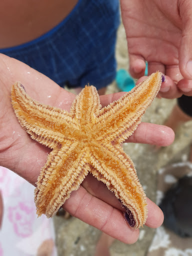 Read moreМоре...уже само по себе это клево! Пляж...Заходишь в море, а тебе по колено...еще немного....по колено...и еще...опять по колено...складывается впечатление, что ты по середине моря стоишь, а тебе по колено...чувствуешь себя повелителем этого всего прекрасного!!!😁 😜По всему берегу не гуляли, были почти рядом с магазом (есть магаз), туалет не оч, деревянный (деревенский, но то что он есть уже хорошо). Нам понравилось! Звезд, крабиков,...