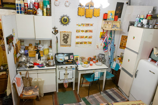 "Ах,как хочется вернуться,ах как хочется ворваться,в милый дом..."(с)Слова этой песни,как никакие другие заставляют нас ностальгировать,вспоминать былые времена с легкой грустью.А теперь,есть место,куда можно прийти и понастальгировать,сидя в кресле эпохи СССР,слушая грамафонные пластинки и считать узоры на ковре-прямо в детство,прямо в юность.Гуляешь ро арт-пространству,и перед глазами,мама печет трубочки на кухне,папа с паяльником чинит торшер))Эти эмоции не передаваемы,и каждый почувствует и вспомнит что-то свое.Кто-то почувствует ароматы маминых котлет,кто-то услышит мамины колыбельные,каждому свое,но посещения музея не оставит равнодушным никого,даже если вы родились в Российской Федерации,а про СССР читали только в учебниках по...