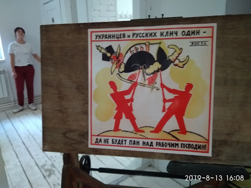 Музей, судя по сцене и скамейкам на улице, проводит культурные мероприятия. В палисаднике огромные головы Маяковского и Ленина, а также еще несколько интересных объектов типа графити на заборе и зеркально висячей инсталяции