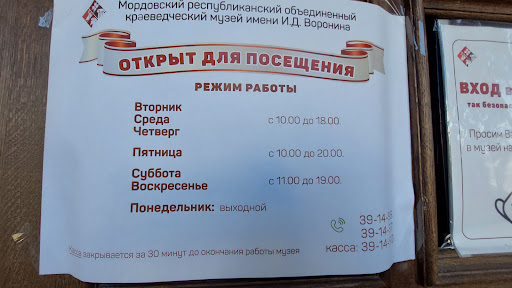 Отвратительное место. Я посетила множество музеев России и мира, даже сама училась на музеолога, но с таким театром абсурда столкнулась впервые. Почему я должна оставлять сумку с телефоном, деньгами и документами чёрт знает где? Ответственные за хранение лица нигде не указаны. Охранник, страдающий синдромом вахтёра, проигнорировал звон рамки металлодетектора, но возбудился на мой рюкзак, заявив, что он "слишком большой", однако на вопрос о габаритах ответить не смог, договорившись до того, что никакую ручную кладь нельзя проносить вообще в принципе. При этом пронести рюкзак моей подруге он разрешил. Пояснить эту ситуацию снова не смог. С тем же успехом администрация музея могла бы назначить на должность охранника сторожевого пса - лаять может, вести диалог - нет. В конце концов нами было решено не тратить деньги на это безобразие и уйти. Учитывая, что кроме нас там вообще никого не было, могу сделать вывод, что данное учреждение не пользуется популярностью у населения и гостей города. Теперь я понимаю, почему. Вижу, что мы не единственные, кто столкнулся с этой проблемой. Стоило прочитать отзывы раньше. Советую всем воздержаться от посещения этого музея, благо он не единственный в Саранске. Посетитель за свои деньги вправе рассчитывать на адекватное обслуживание, а не вот...