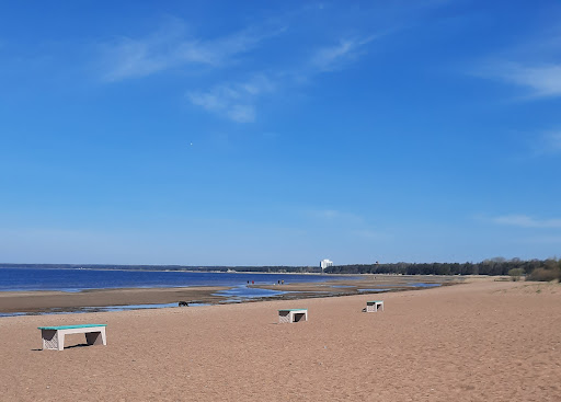 Отличный пляж. Залив, конечно, мелкий и купание не рекомендовано вообще по всему побережью, но летом загорать - отлично, в остальное время - прогулки - тоже хорошо. Большая парковка у парка Дубки (правда, в " высокий сезон" максимально заполнена и случаются пробки...