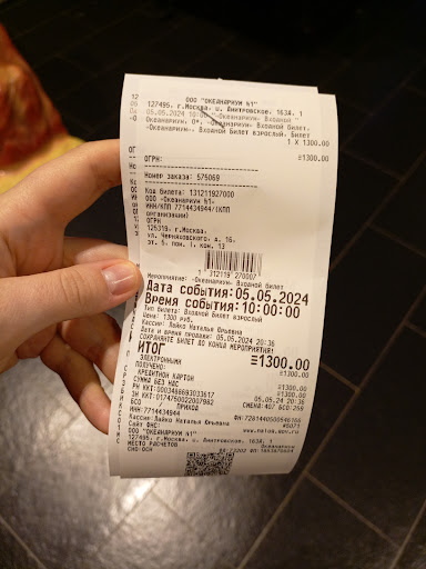 Выходной день, выделили время доехать детям показать океанариум. В пути 2 с лишним часа в одну сторону, на кассе уточнила до 22 ли часов работают? Ответ был да. Оплатили билеты, пошли смотреть орбиталей океанариума и в 21:40 нас догоняет сотрудник, который говорит, что они закрываются. Я спокойно ответила, что мы в курсе, что до 22х работает все, так что и так идём к выходу. В ответ получено было кривое недовольное лицо и комментарий : вообще-то в 22 часа - это мы (она говорила про сотрудников, а не гостей) должны быть уже наверху. Что я могу сказать : или за 1,5 часа до закрытия продавайте билеты со скидкой, предупредив о реальном графике работы, что выгоняете раньше 22х часов, или разберитесь со своими сотрудниками. Приятного мало получить такое при цене билета 1300 руб Если говорить о самом океанариуме, минуя тему персонала, то очень красиво все, некоторые аквариумы зеленоваты, но в общем и целом чисто. Много живности. Отдельный лайк фотографу, который смело может экскурсоводом тут подрабатывать. Приятный в общении мужчина, ребенку про рыбок интересные моменты рассказал