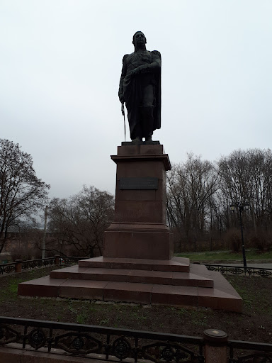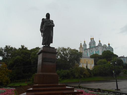 Монументальный, гордый, величественный памятник в самом, наверное, красивом и сильном месте древнего Смоленска. Несмотря на достаточно классическое (в моем непрофессиональном понимании) скульптурное решение, памятник действительно производит впечатление. Даже со скидкой на то, что такие великие люди в нашем сознании существуют скорее как набор исторических анекдотов, казусов и геройских поступков, чем как цельная (и тем более – историческая – личность). Отметим, впрочем, что существенная часть этого впечатления – место, где он расположен: с одной стороны – стены древнего города, с другой – живописная храмовая гора – все это как-то отключает тебя от современности, даже несмотря на то, что памятник и сквер – это пятачок, со всех сторон окруженный плотным автомобильным движением. Стоишь, так вот, задрав голову, глядишь в лицо Светлейшего князя, спроектировавшего и воплотившего одну из величайших побед в российской истории, и надеешься, что еще не все потеряно для твоей с ним общей Родины. Сквер, кстати, по местным меркам довольно неплохой – и с точки зрения организации пространства, и с точки зрения содержания территории. Поверьте, для современного Смоленска это редкость на грани чуда: город (даже его туристическая – то есть приднепровская - часть), к сожалению, производит удручающе неухоженное впечатление – клумбы, если и есть, не политы, от цветов остались какие-то сухие палки, газон не пострижен, светильники работают через один. Рядом со сквером, в принципе, есть где припарковать машину, но и движение плотное, и рельеф специфический, поэтому с местами напряженка. Впрочем, передвигаться по центральной части, с учетом плотности интересных локаций, я бы рекомендовал на...