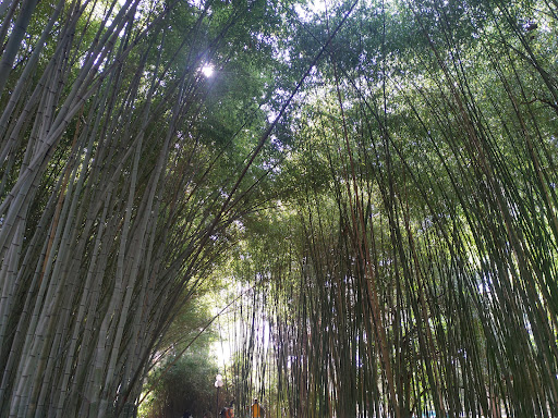 Нижняя часть парка намного меньше. Чтобы в нее попасть нужно перейти дорогу по подземному переходу и пройти по указателям. В парке по большей части вам встретятся все те же растения. По всей территории парка бегают куры и петухи, в озерах плавают лебеди. На многих стеблях бамбука видны надписи туристов.